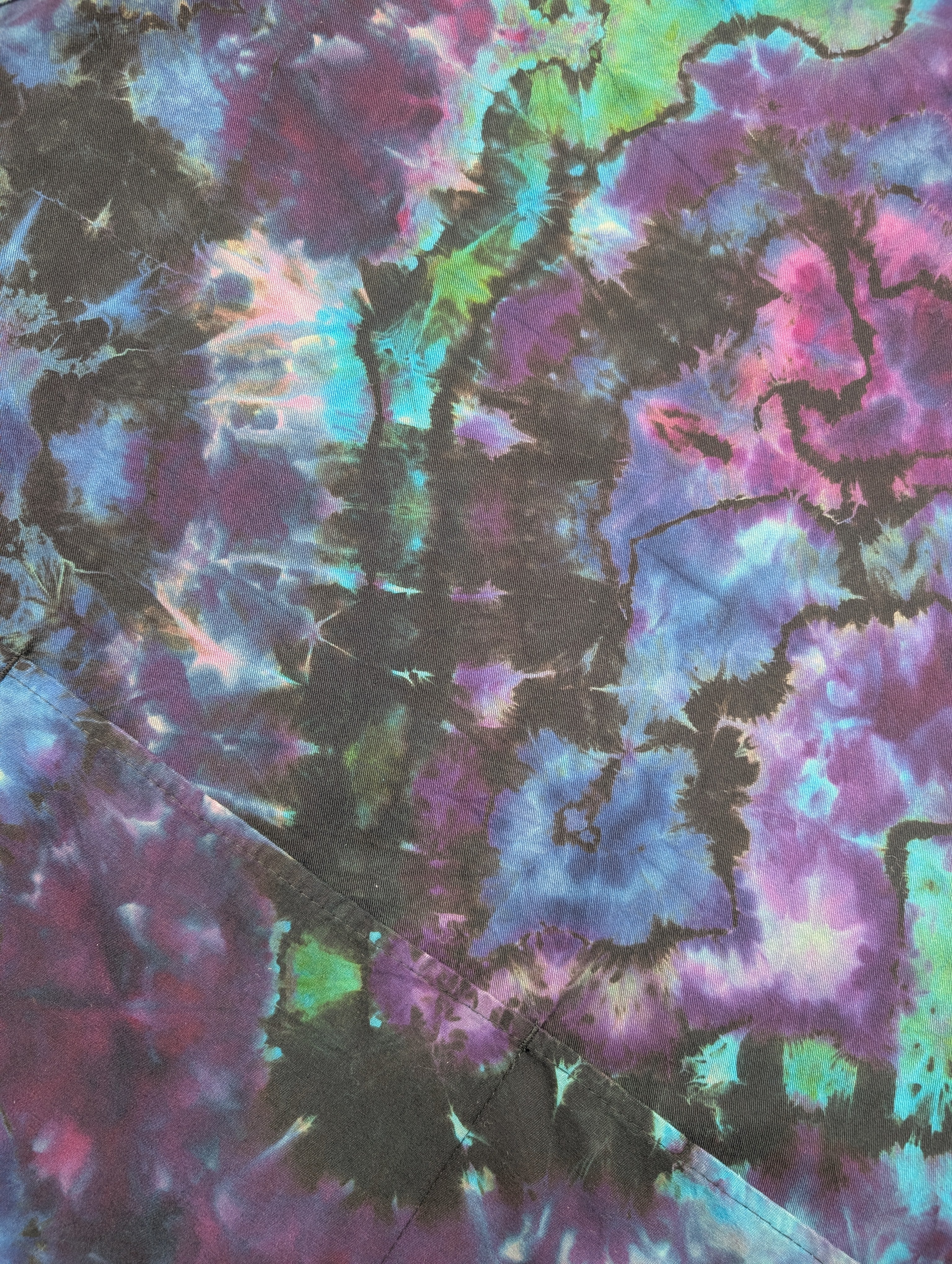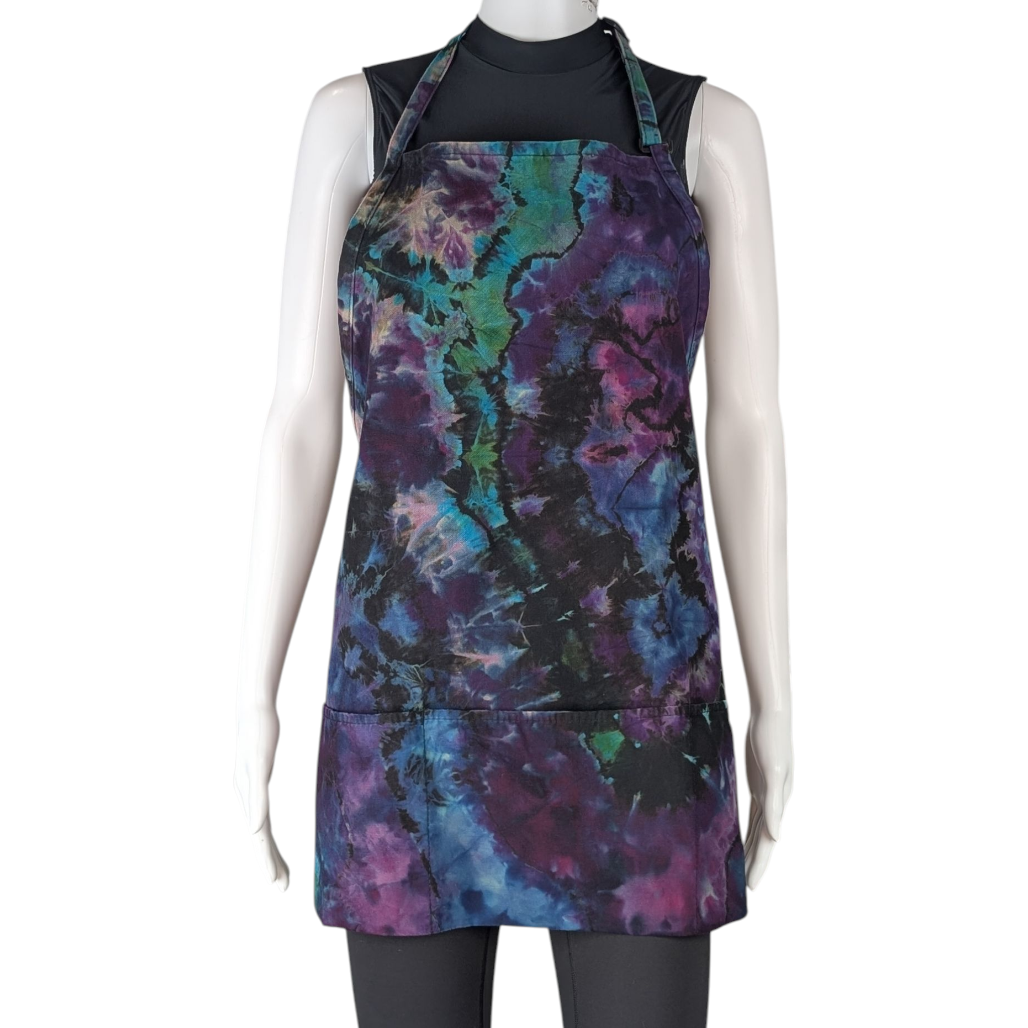 Stand out in the kitchen with this vibrant geode style apron featuring shades of black, purple, blue, and green. Complete with pockets, this one size fits all apron is perfect for any chef or baker.