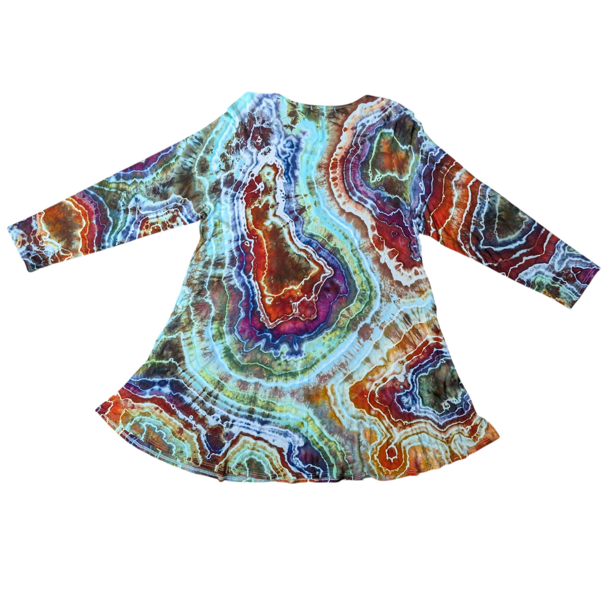 Make a statement in this stunning geode style tie dye dress in Autumn rainbow colors. With pockets and a flowy fit, this Jollie Lovin rayon dress is perfect for any occasion. Soft and comfortable, you'll want to wear it every day.