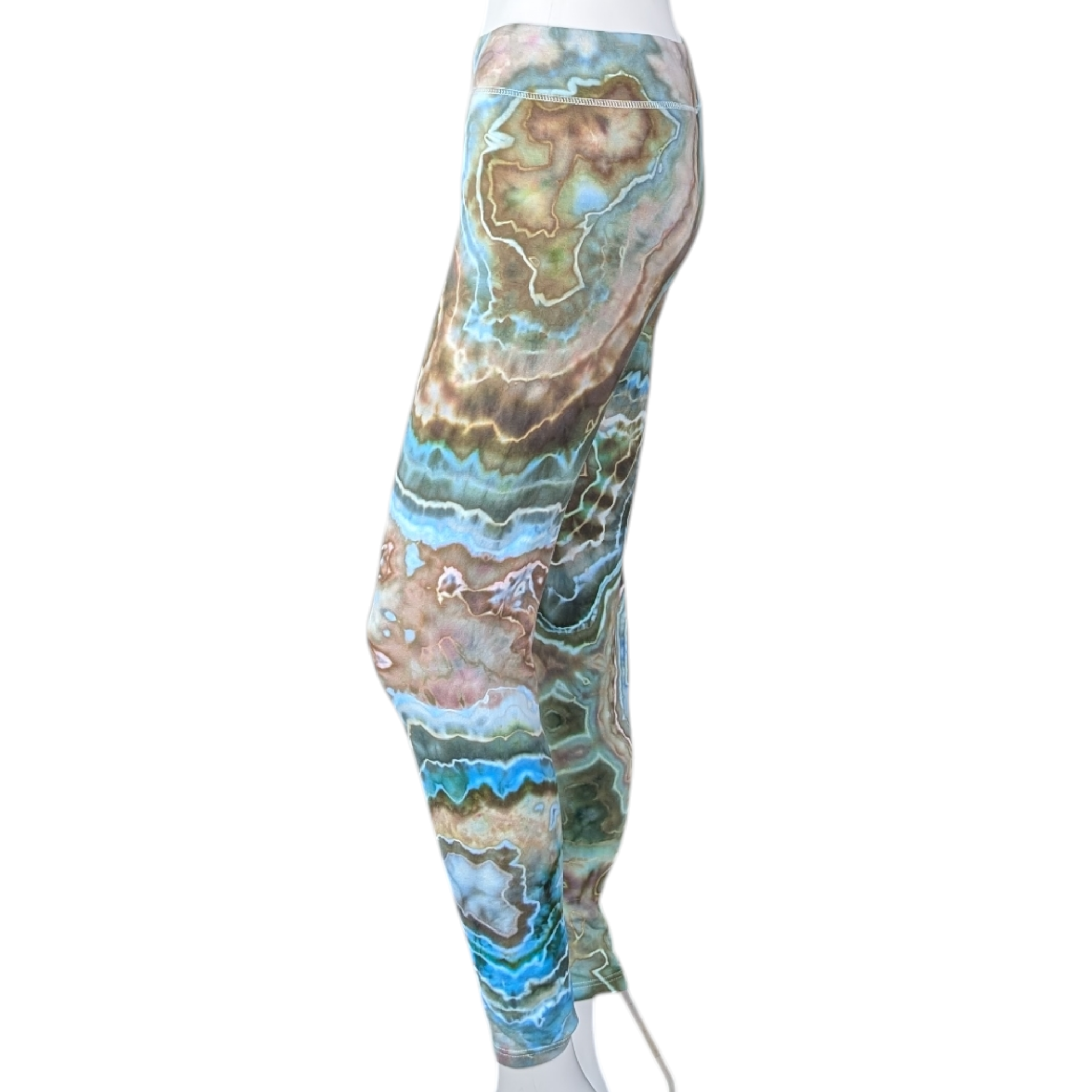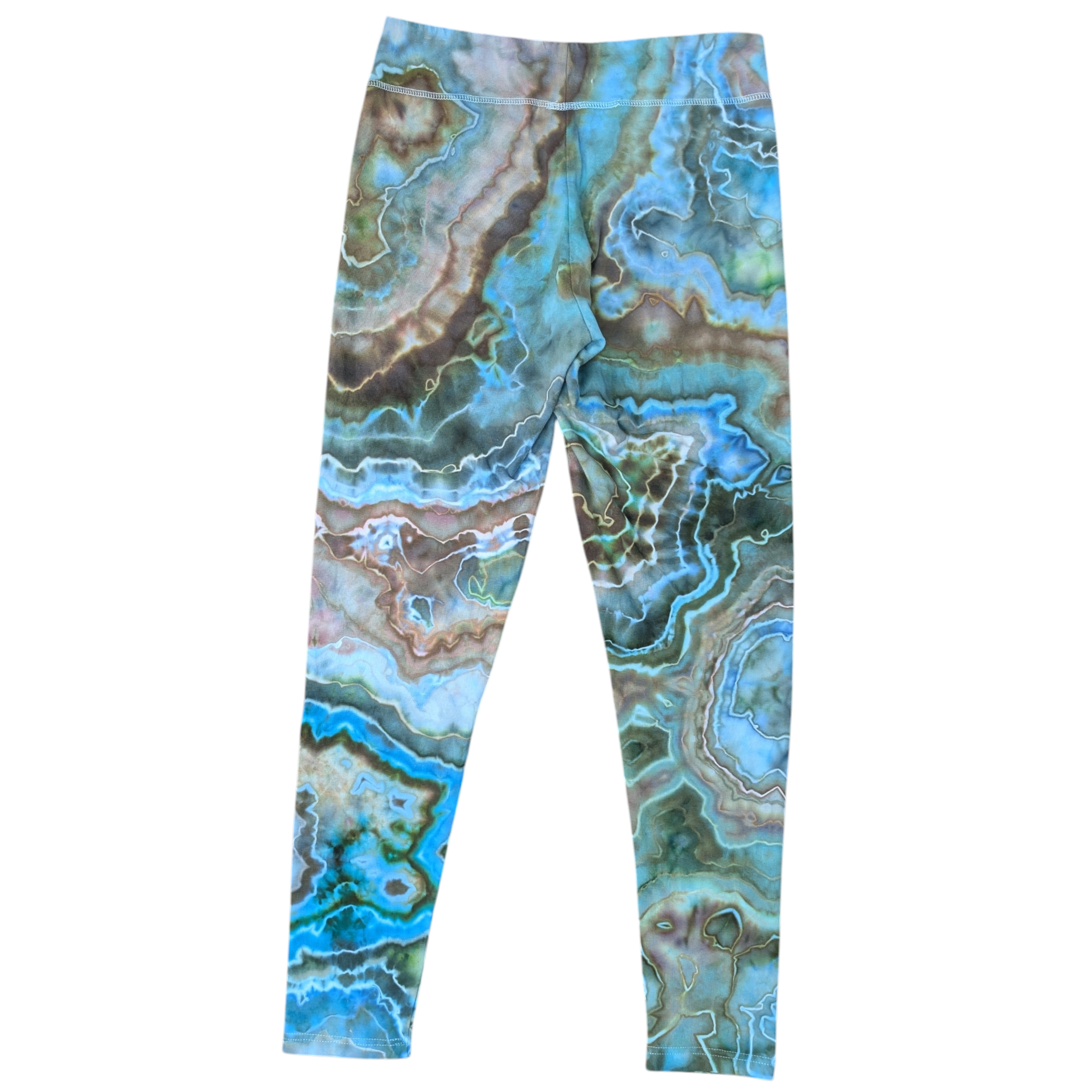 These women's large tie-dye leggings feature a geode style design in an earthy watercolor color scheme. Made of 92% cotton material, they are very soft, stretchy, and comfortable, making them great for everyday wear or a fun workout.