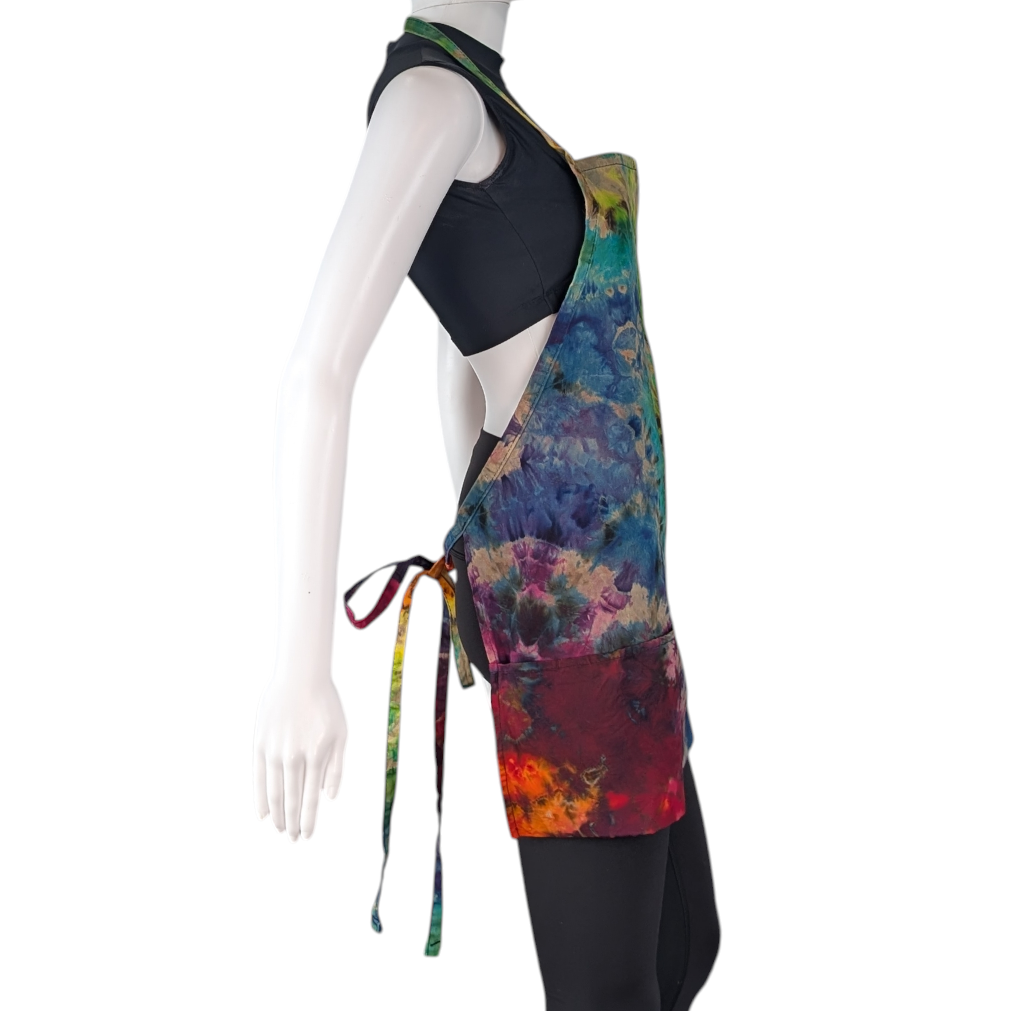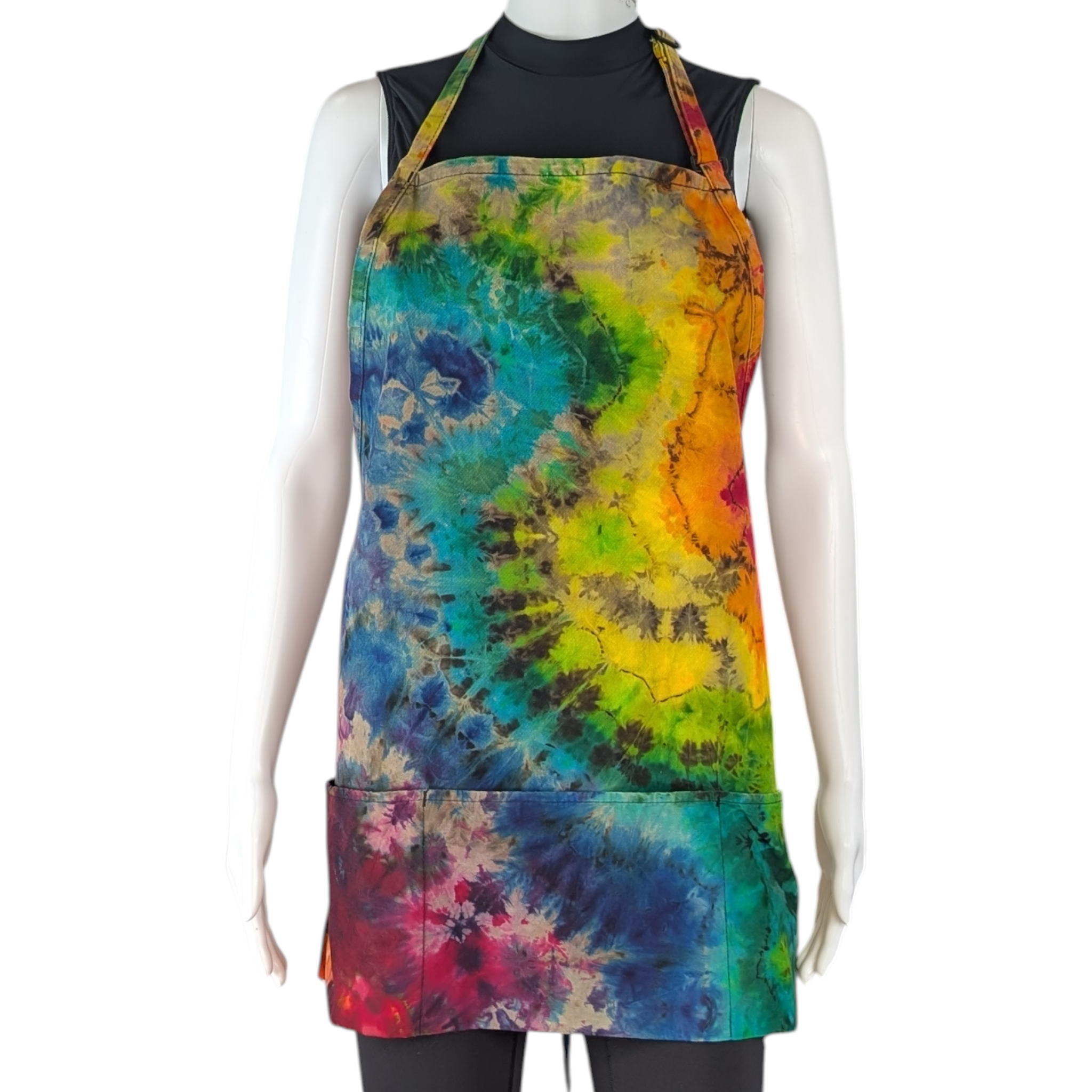 Rock the tie-dye look in the kitchen or the art room with this vibrant geode style design apron in rainbow and black colors. Features three pockets and an adjustable neck strap for ultimate convenience.